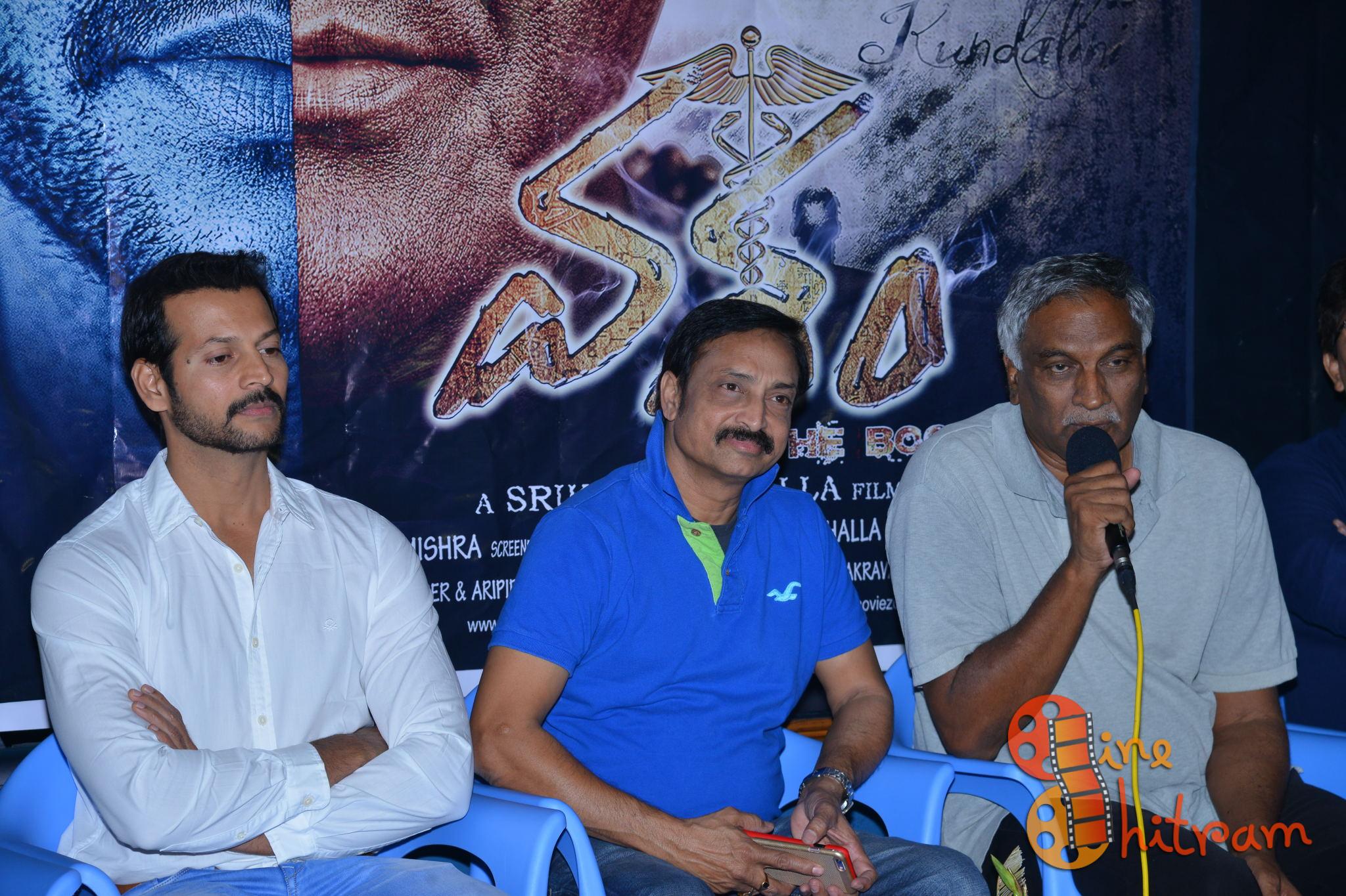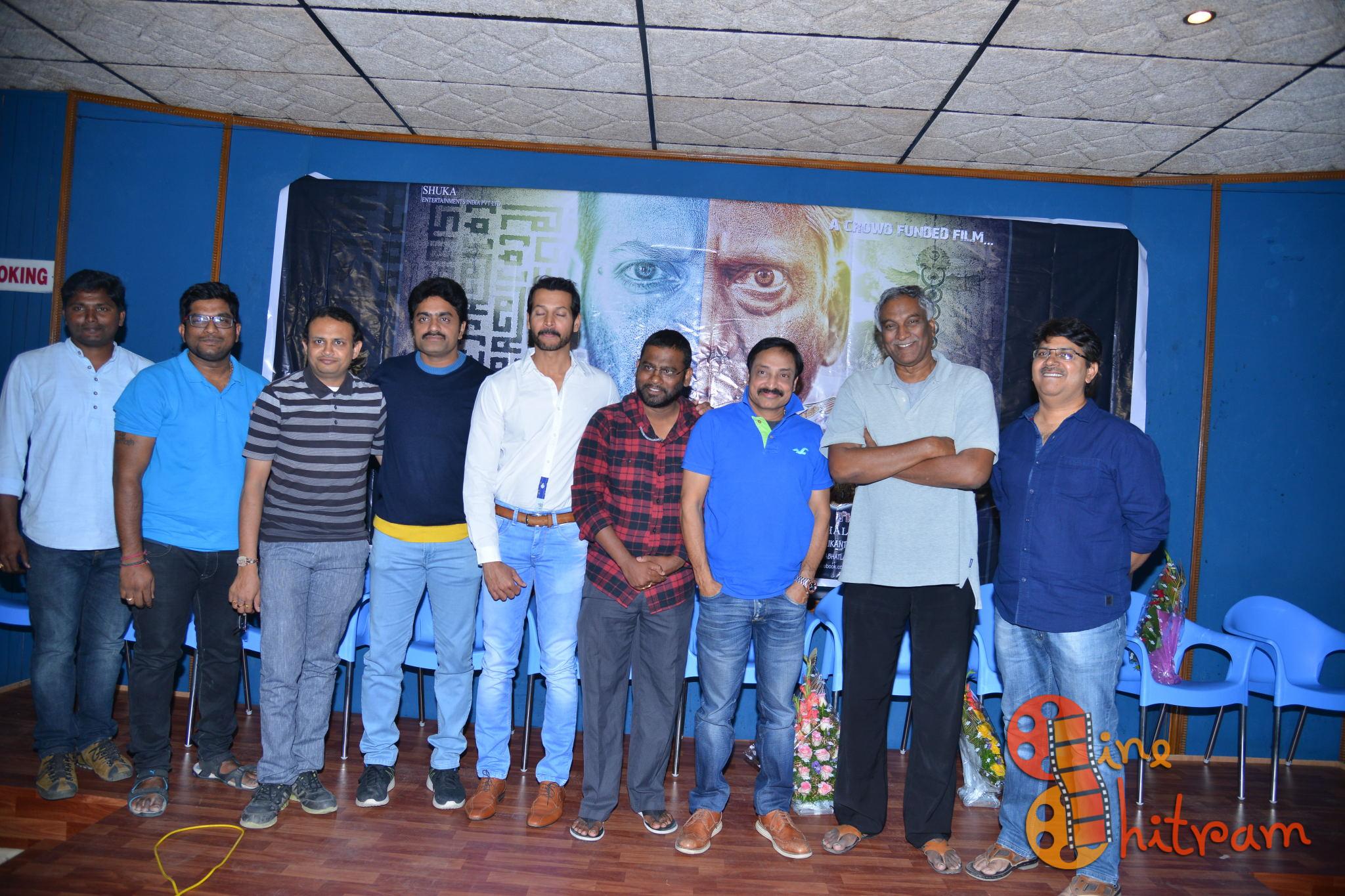 దర్శకుడు శ్రీకాంత్ చల్లా మాట్లాడుతూ.. వందేళ్లక్రితం కొన్ని వేల కిలోమీటర్లు గంల్లో ప్రయాణం చేయవచ్చు.. ఎలక్ట్రిసిటీతో వెలుతురు తీసుకురావచ్చు అంటే దాన్ని తప్పకుండా మ్యాజిక్ అనే వారు. అంటే మనకు తెలిసిన దాన్ని సైన్స్ అంటాం. తెలియనిదాన్ని మ్యాజిక్ అంటాం. అసలు సైన్స్ అనేది స్పిరిట్చువాలిటీలో ఒక భాగం మాత్రమే. ఒక మనిషి ఎందరో యోగులను కలిసి అధునాతన సైన్స్ను నేర్చుకుని.. పంచభూతాలను నియంత్రించే శక్తి సంపాదిస్తే? ఇతరులను వశం చేసుకోగలిగే శక్తి సంపాదిస్తే? అంత శక్తిని ఒక మనిషి నియంత్రించగలడా అనే విషయాలను ఇందులో ప్రస్తావించాం. ఈ సినిమాలో సైన్స్ను, సూపర్ నాచురల్ పవర్ను కలిపి తీసుకున్నాం. పంచభూతాలను తన ఆధీనంలోకి తీసుకునే పవర్ వచ్చిన మనిషి ఆతర్వాత తనలోని మానవత్వాన్ని కోల్పోతాడా? లేక సమాజానికి మంచి చేయడానికి దాన్ని ఉపయోగిస్తాడా? అనే థీవ్ు తీసుకున్నాం. ఒక్క ఫ్రేవ్ు కూడా అనవసరం అయినది మీకు కనపడదు. ప్రవీణ్ సత్తారు గారి దగ్గర ‘చందమామ కథలు’ సినిమాకు కో రైటర్గా పనిచేశాను. ఆ తర్వాత ఈ కథను ఆయనకు చెప్పాను. ఆయన నువ్వు తీయగల సత్తా ఉన్న వాడివి. థింక్ వెరీ డిఫరెంట్ అన్నారు. ఇక సినిమా నిర్మాణం ఎలా అనే ఆలోచన వచ్చినప్పుడు ఈ స్క్రిప్ట్ ఆన్లైన్లో పెట్టేద్దాం నచ్చినవారు వస్తారు మనతో అనుకున్నాం. ఆన్లైన్లో పెట్టిన తర్వాత కొందరు మిత్రులు క్రౌడ్ ఫండింగ్ చేశారు. ఆర్టిస్ట్లు, టెక్నీషియెన్స్ సహకారం మరువలేనిది. ముఖ్యంగా డీఓపీ దుర్గా కిషోర్ గారు అద్భుతంగా చేశారు. ఆయన గతంలో కొన్ని టాలీవుడ్, బాలీవుడ్ సినిమాలకు అసిస్టెంట్ కెమెరామెన్గా చేశారు. మమ్మల్ని ఆశీర్వదించడానికి ఈరోజు ఇక్కడికి వచ్చిన పెద్దలకు కృతజ్ఞతలు అన్నారు.