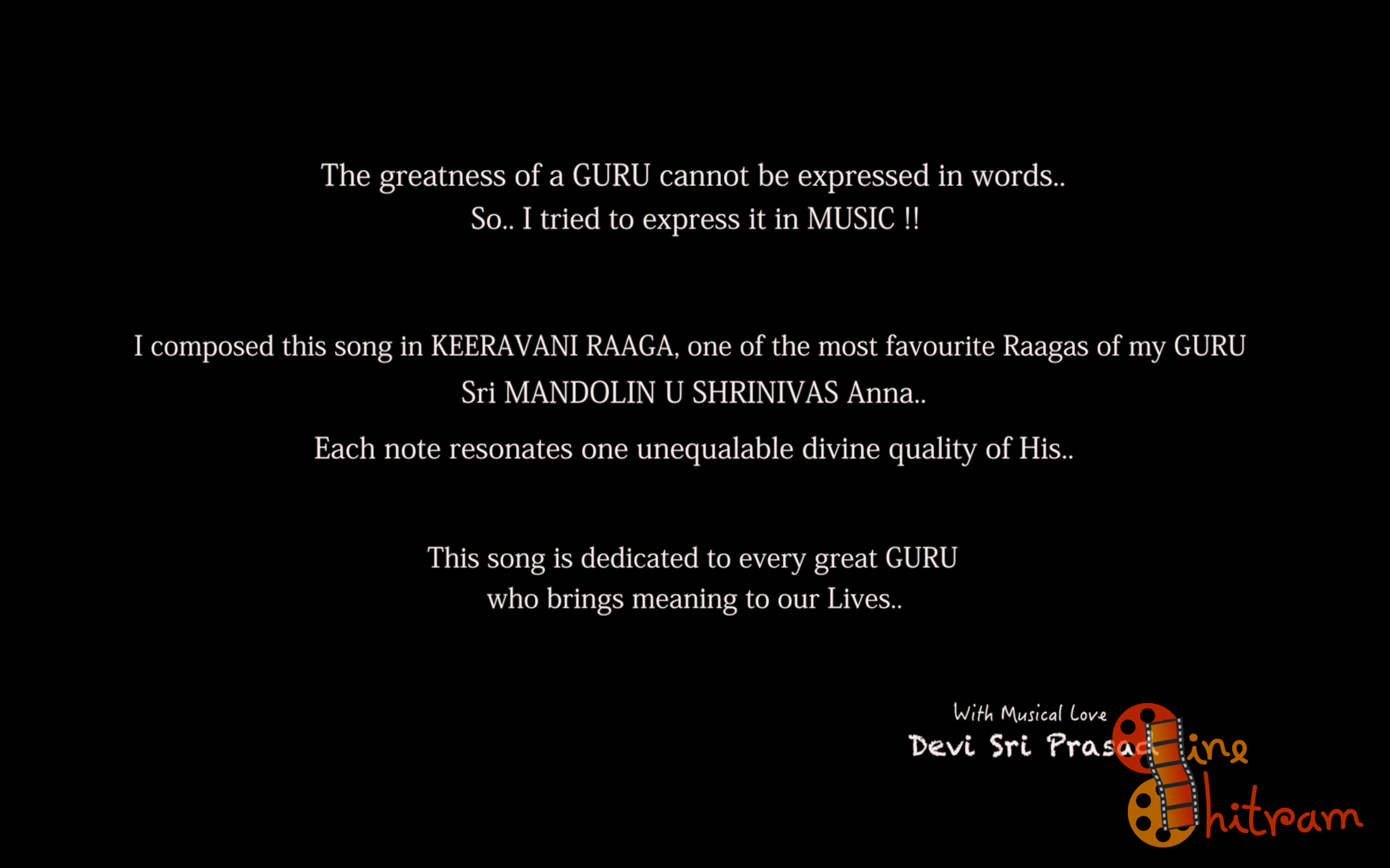 DSP is going to launch a Song called “GURAVE NAMAHA” as a tribute to Sri Mandolin Shrinivas.