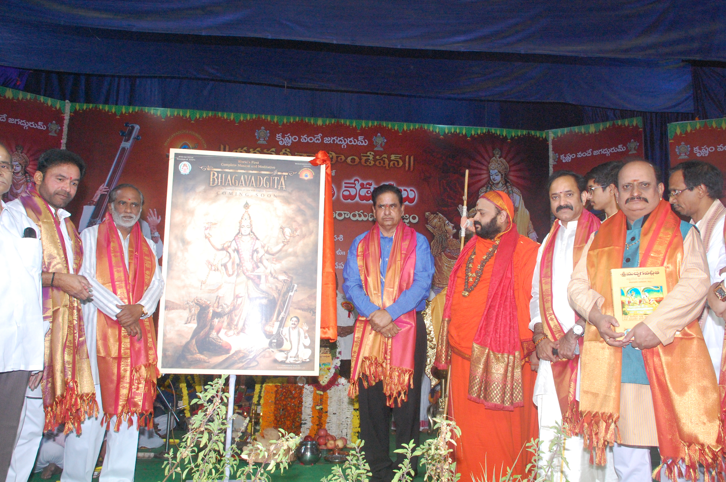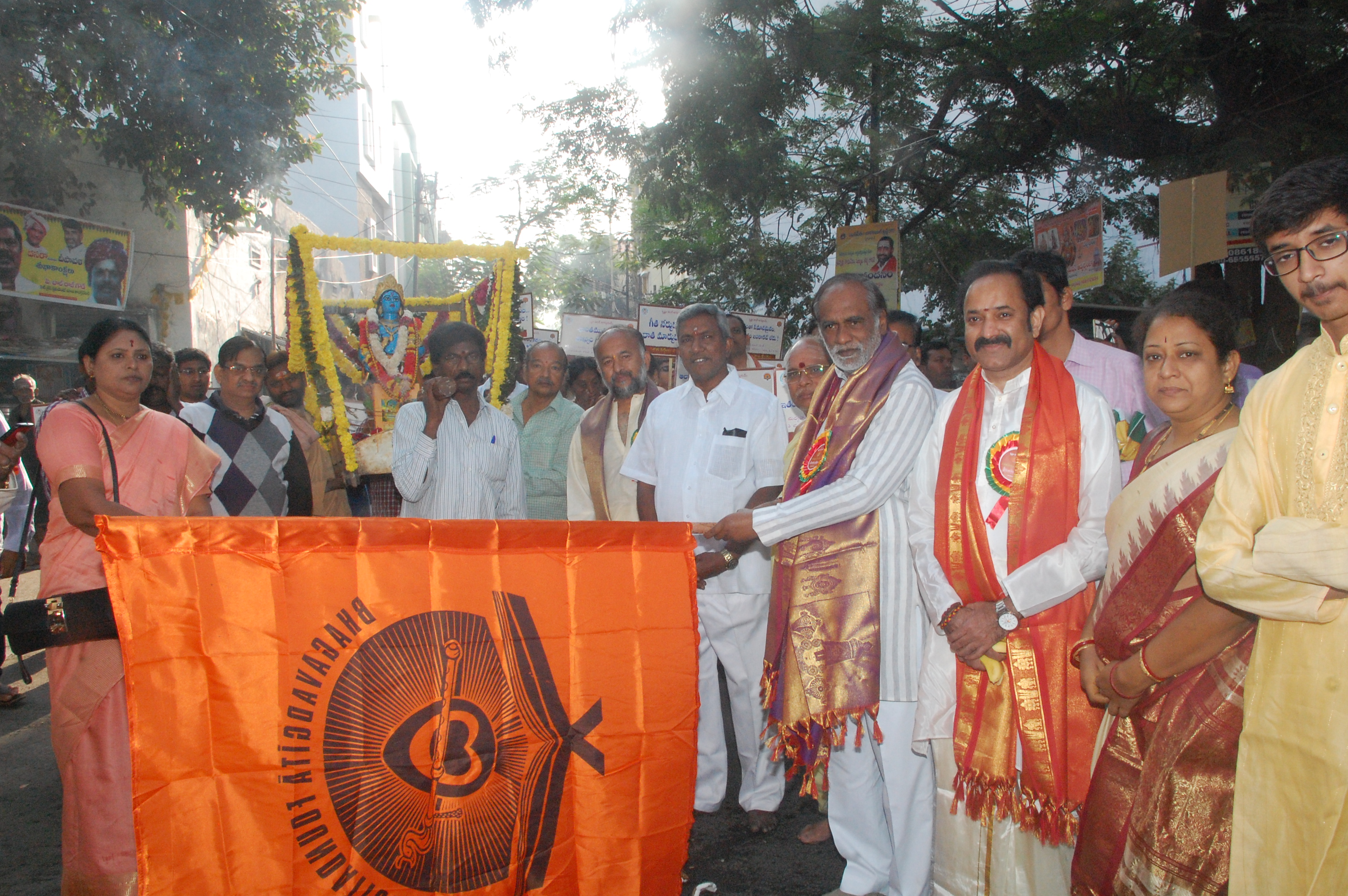 ఈ నెల 10వ తేదీ శనివారం నాడు ఉదయం 10 గంటలకు హైదరాబాద్ లోని త్యాగరాయ గానసభ (చిక్కడపల్లి) లో ‘గీతాజయంతి’ వేడుకలు, సంపూర్ణ భగవద్గీత పారాయణము ‘భగవద్గీత ఫౌండేషన్ ఆధ్వర్యంలో ఘనంగా జరిగాయి.మరియు అదే రోజు ఉదయం 8గంటలకు చిక్కడపల్లి శ్రీ వేంకటేశ్వరస్వామి దేవాలయం నుండి గీతా బంధువులతో శోభాయాత్ర ను భారతీయ జనతా పార్టీ రాష్ట్ర అధ్యక్షుడు ఎం.ఎల్.ఎ. డాక్టర్ కె.లక్ష్మణ్ ప్రారంభించారు. ఈ సందర్భంగా ఆయన మాట్లాడుతూ ..’భగవద్గీత ధర్మా ధర్మాలు, కర్తవ్యం, ఆనందంగా జీవించటం ఎలాగో చెబుతుందన్నారు.భగవద్గీత ను యువతకు చేరవేయాలనే సదాశయంతో భగవద్గీత ఫౌండేషన్ వ్యవస్థాపక అధ్యక్షులు శ్రీ గంగాధర శాస్త్రి ఈ కార్యక్రమం చేపట్టటం ముదావహమన్నారు.ఢిల్లీ లో తెలంగాణ రాష్ట్ర ప్రభుత్వ ప్రత్యేక ప్రతినిధి డా. సముద్రాల వేణుగోపాలాచారి మాట్లాడుతూ..ముఖ్యమంత్రి కె.సి.ఆర్. తో మాట్లాడి ‘ భగవద్గీత ను పాఠ్యాంశం గా చేర్చటంతో పాటు సముచిత స్థానాన్ని కల్పించే విధంగా తనవంతు కృషి చేస్తానన్నారు. అంబర్ పేట శాసన సభ్యులు జి.కిషన్ రెడ్డి మాట్లాడుతూ..’ భగవద్గీత ఉత్తమ జీవన విధానానికి స్ఫూర్తి నిస్తుందని అన్నారు. ప్రతిఫలాపేక్షలేకుండా కర్మ చేయటం లో ఉండే ఆనందం ఏమిటో చెబుతుందన్నారు. గంగాధరశాస్త్రి ఈ మహాయజ్ఞాన్ని భుజాన వేసుకుని ముందుకు నడిపించటం సంతోషించ తగినది అన్నారు.