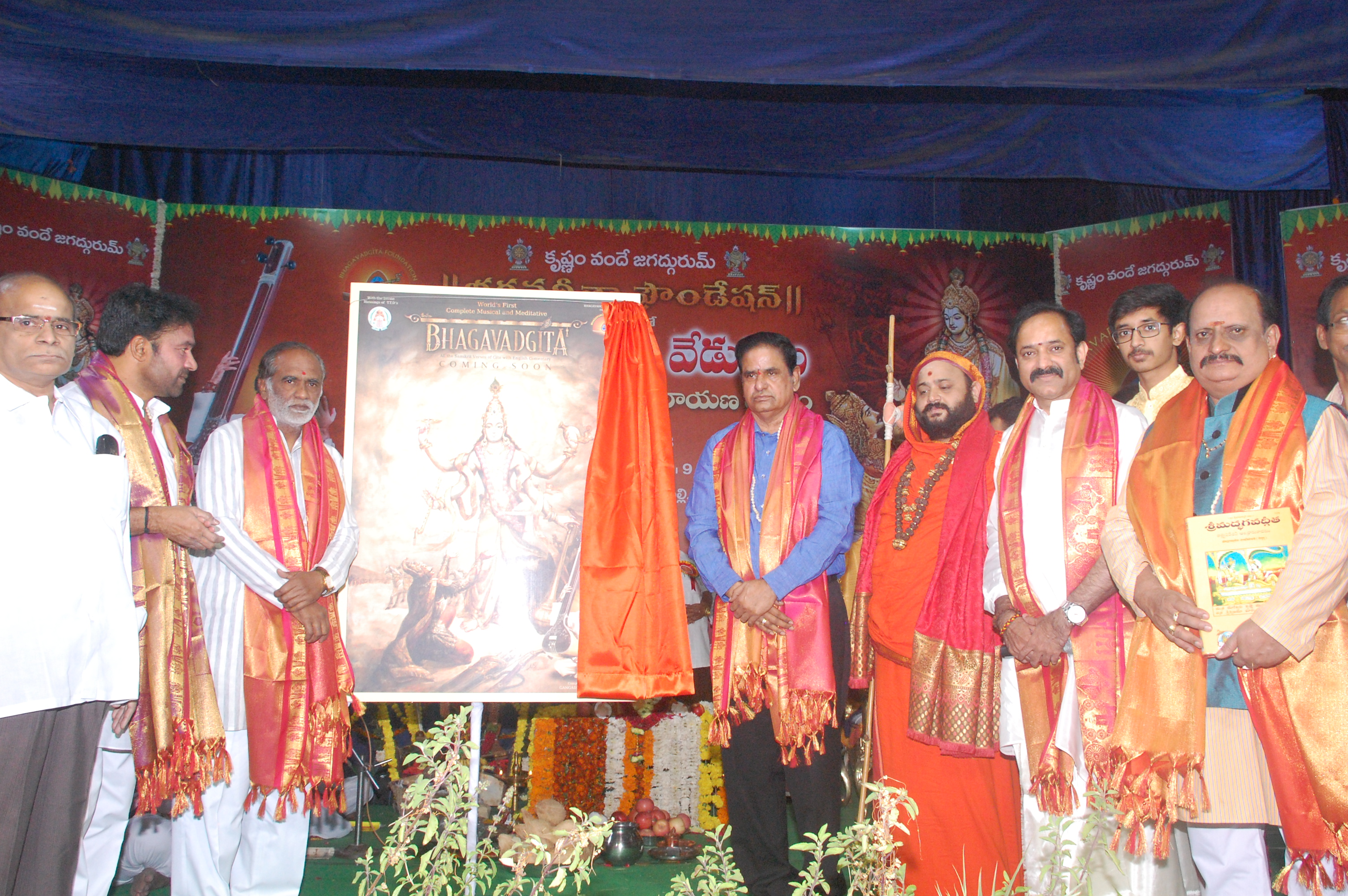 భగవద్గీత ను ప్రతి ఒక్కరు చదవాలని అభిలషించారు పుష్పగిరి పీఠాధిపతి శ్రీ విద్యానృసింహభారతి స్వామి. భగవద్గీత ఫౌండేషన్ వ్యవస్థాపక అధ్యక్షులు శ్రీ గంగాధర శాస్త్రి మాట్లాడుతూ భగవద్గీత మతాలకు అతీతమైనది అన్నారు. ఈ కార్యక్రమంలో వంశీ సంస్థల అధినేత వంశీ రామరాజు, త్యాగరాయ గాన సభ అధ్యక్షుడు కళా వెంకట దీక్షితులు, ఐ ఫోకస్ అధ్యక్షులు వాసుదేవ శర్మ, భగవద్గీత ఫౌండేషన్ ఉపాధ్యక్షులు బి.కె.శర్మ, ప్రధాన కార్యదర్శి ఎస్.చలపతి రాజు, కోశాధికారి ఎల్.అర్చన తదితరులు పాల్గొన్నారు.