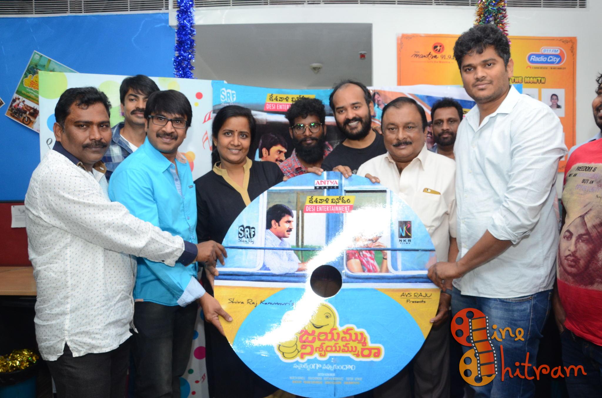 విడుదల తేదీ సమీపించే కొద్దీ క్రేజ్పెంచుకొంటున్న “జయమ్ము నిశ్చయమ్మురా” చిత్రంలోని రెండు పాటలను 91.1 ఎఫ్.ఎం రేడియో సిటీలో విడుదల చేశారు. దర్శకనిర్మాత శివరాజ్ కనుమూరి, చిత్ర సమర్పకులు ఏ.వి.ఎస్.రాజు, నిర్మాతల్లో ఒకరైన సతీష్ కనుమూరి, హీరో శ్రీనివాస్ రెడ్డి, సంగీత దర్శకులు రవిచంద్ర, బ్యాక్ గ్రౌండ్ స్కోర్ చేసిన కార్తీక్, ఈ చిత్రంలో కీలక పాత్ర పోషించిన రవివర్మ, ఈ చిత్రం ప్రదర్శన హక్కులు సొంతం చేసుకున్న ఎన్.కె.ఆర్ ఫిల్మ్స్ అధినేత నీలం కృష్ణారెడ్డి, గీత రచయితల్లో ఒకరైన రాము, సౌండ్ డిజైనర్ గీత, ఆర్.జె.సునీత తదితరులు ఈ కార్యక్రమంలో పాల్గొన్నారు.