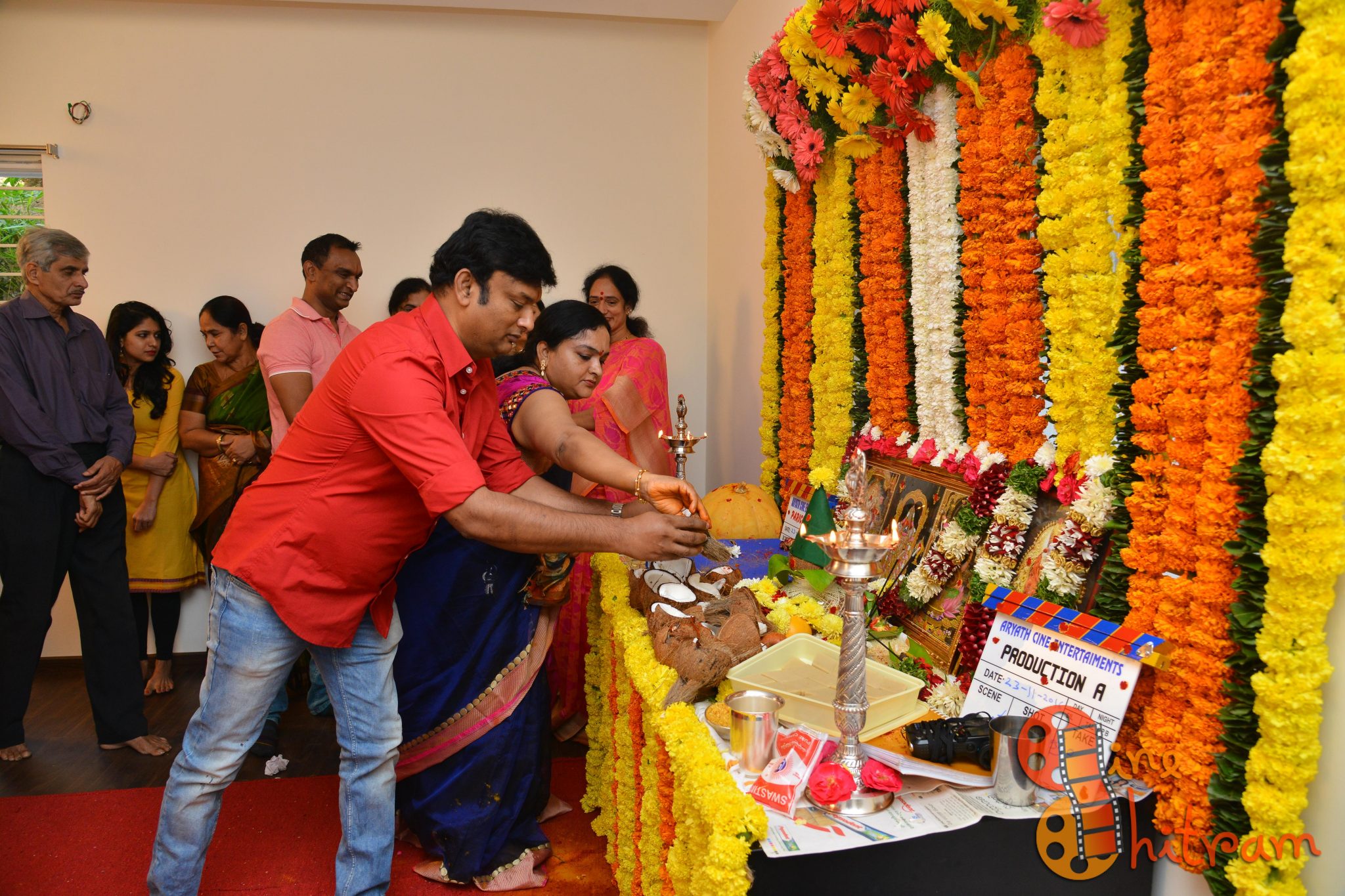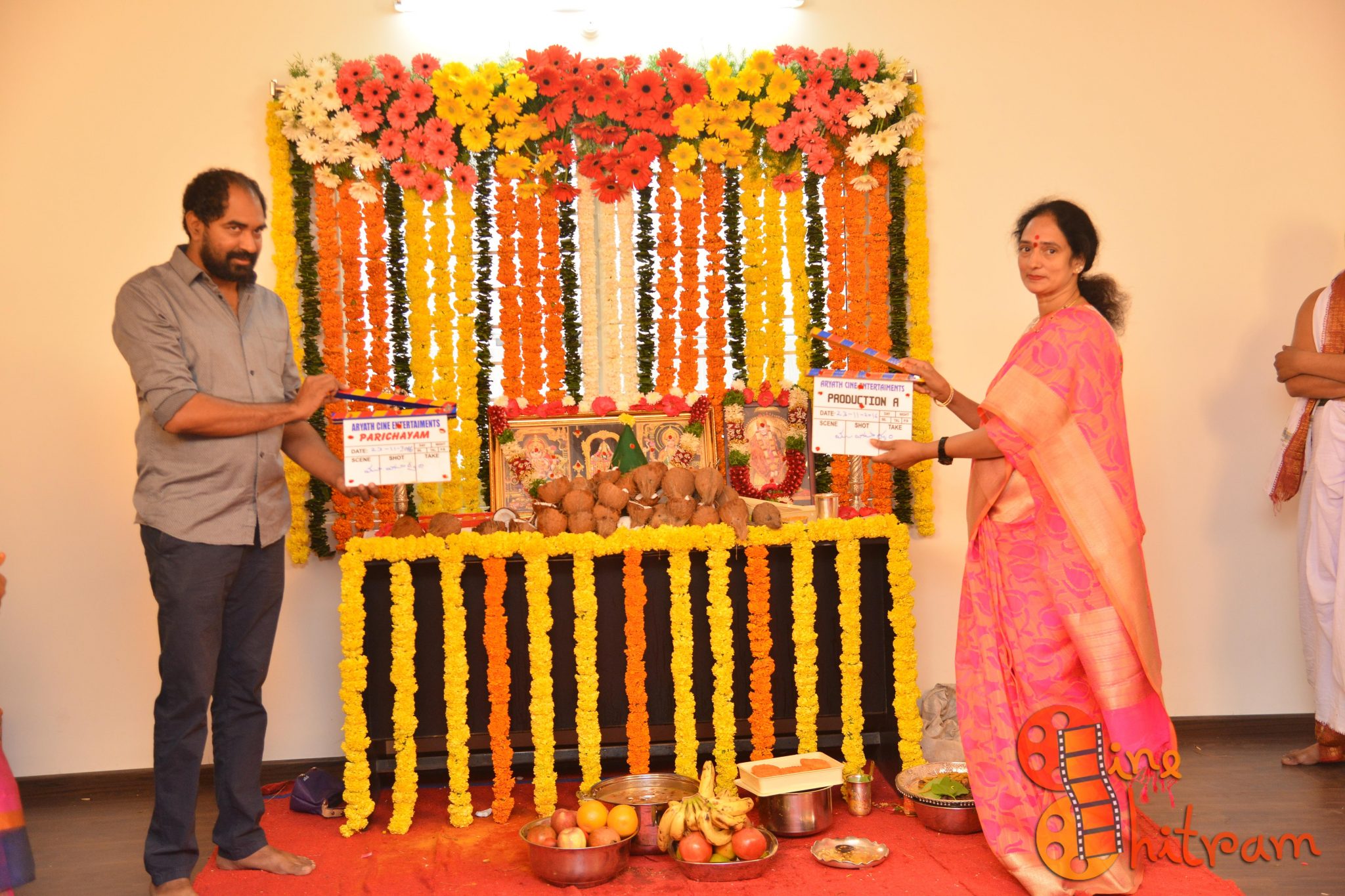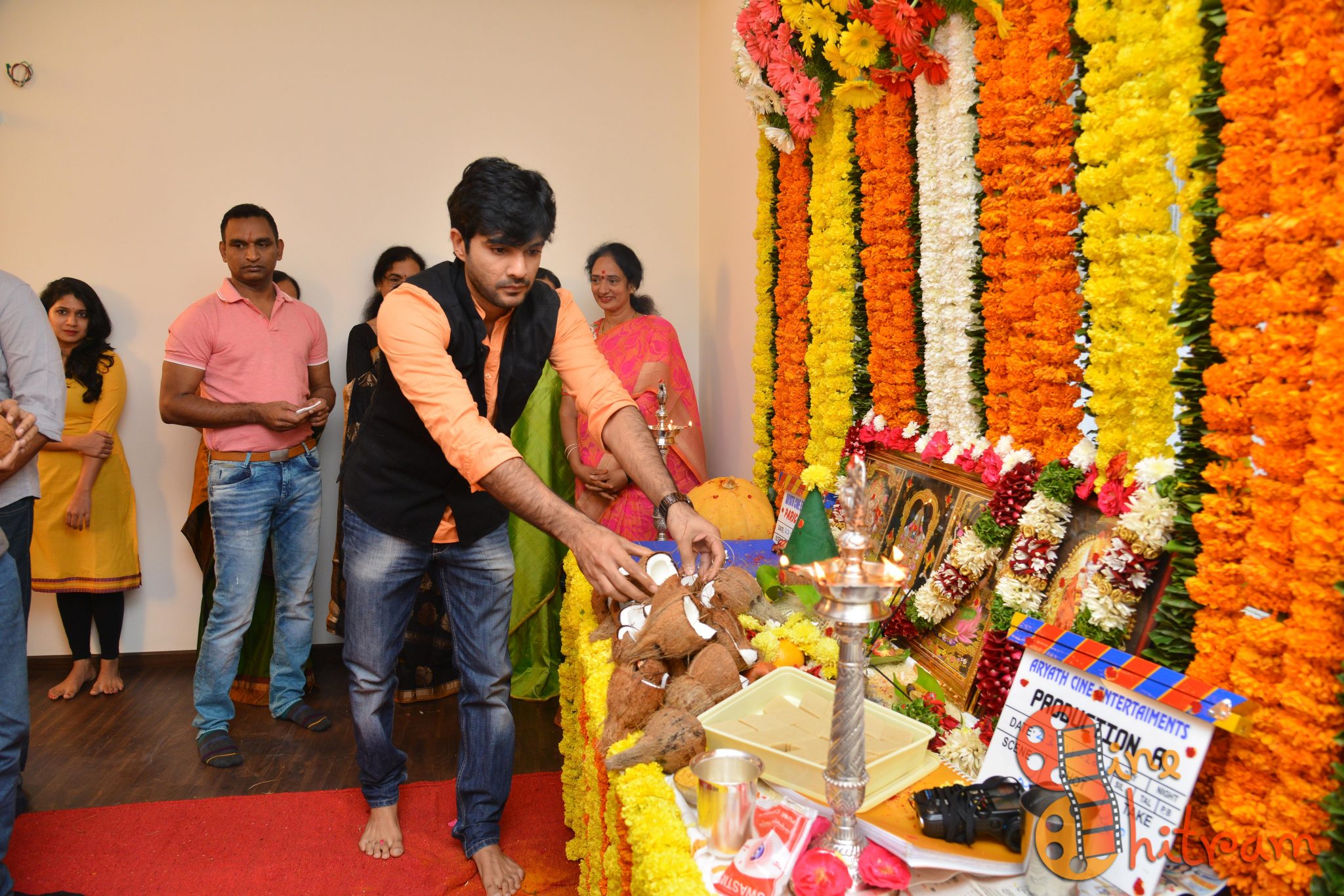 Hyderabad Nawabs fame Lakshmikanth Chenna would be directing a film with an all new star cast, while the other film starring “Sidhu” of Guntur Talkies would be directed by debutant Aditya Mandala. Mr. Krish and Smt. Syamala garu gave the clap for the first shot picturized on deity’s pictures while Mr. Rajiv Reddy switched the camera on.