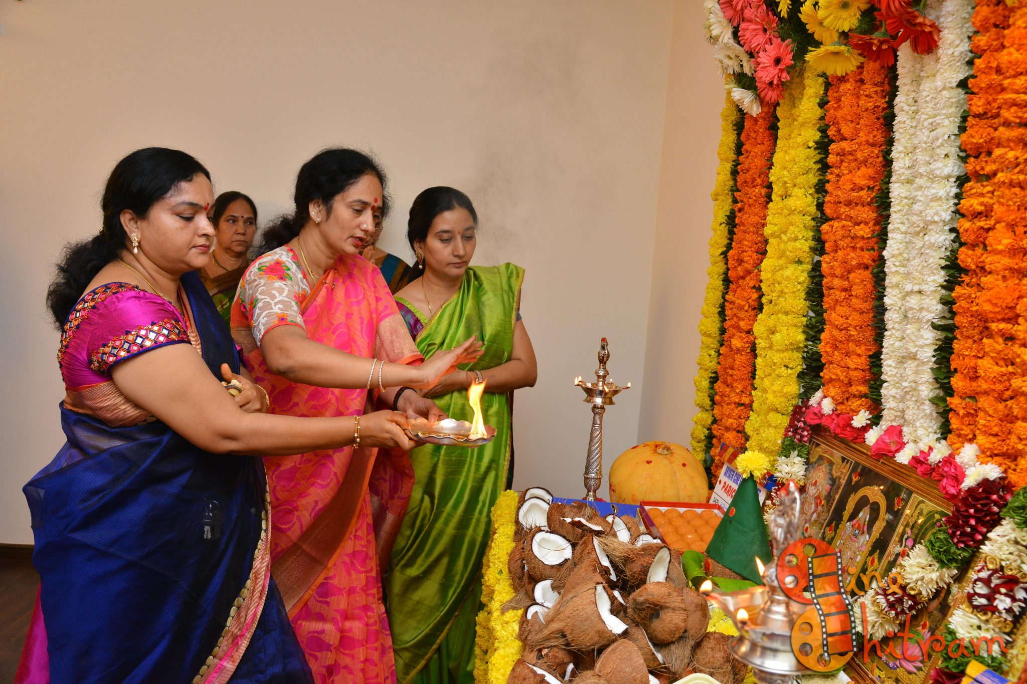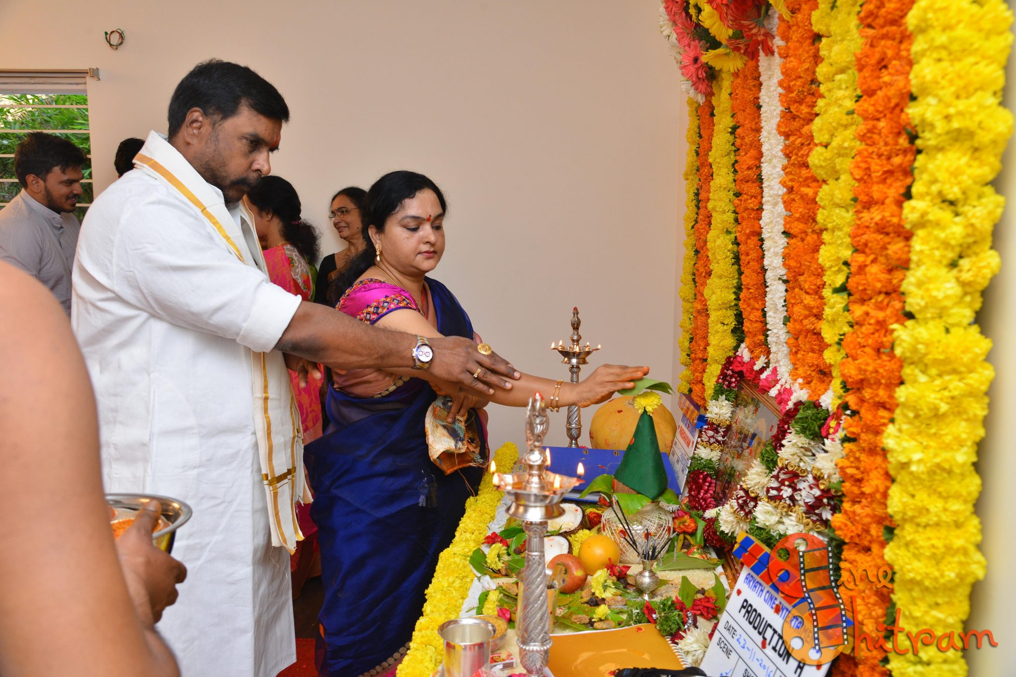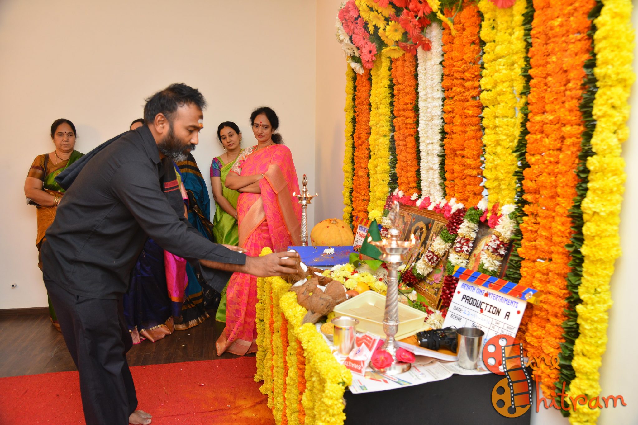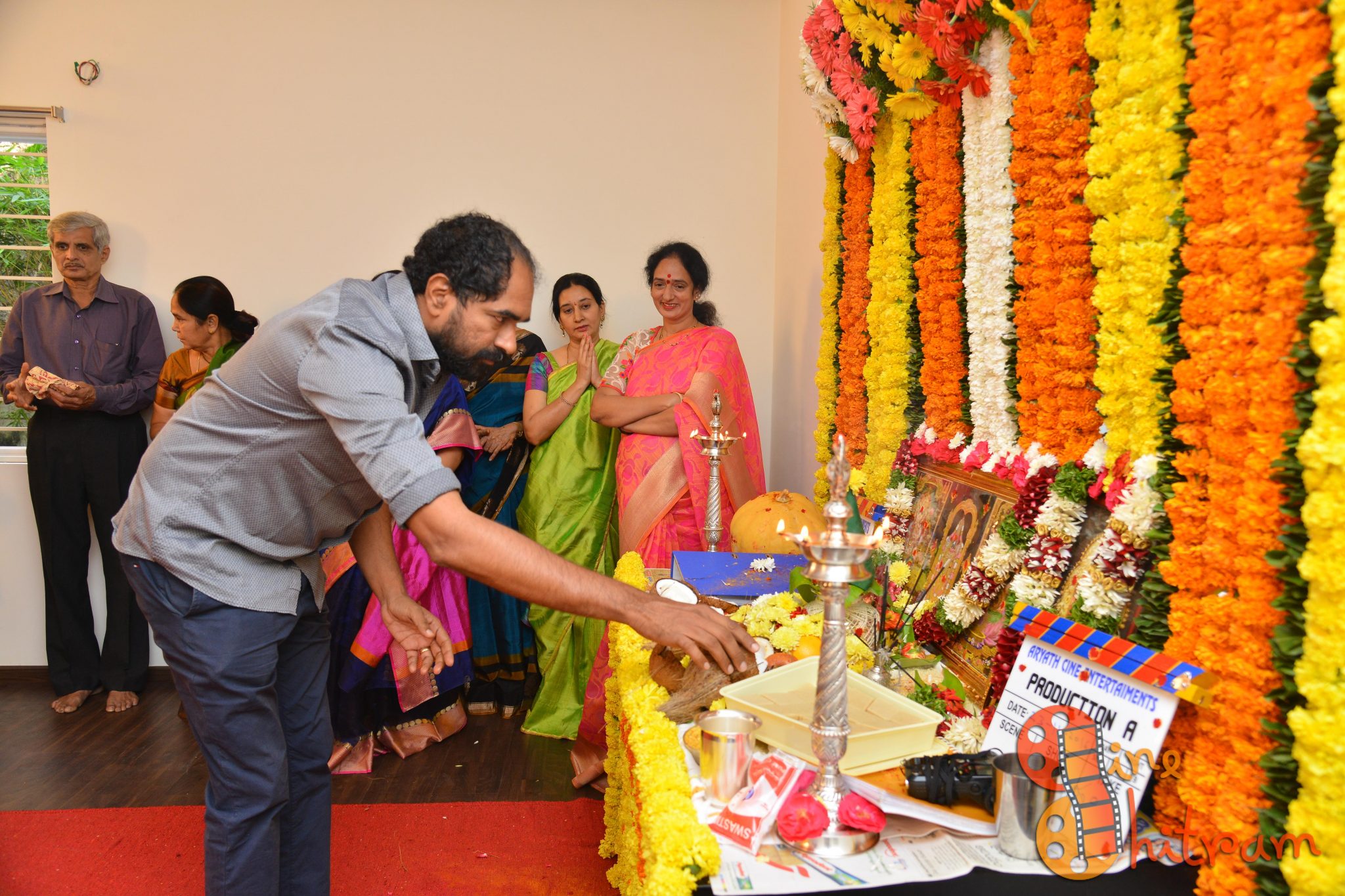 Hyderabad Nawabs fame Lakshmikanth Chenna would be directing a film with an all new star cast, while the other film starring “Sidhu” of Guntur Talkies would be directed by debutant Aditya Mandala. Mr. Krish and Smt. Syamala garu gave the clap for the first shot picturized on deity’s pictures while Mr. Rajiv Reddy switched the camera on.