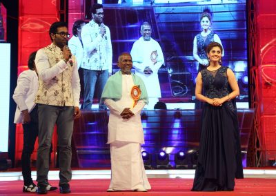 On the important occasion of Mohan Babu garu’s birthday and Sri Vidyanikethan Educational Institutions celebrating 25th anniversary, legendary music composer Ilayaraja announced the Telugu title of Vishnu’s film as Voter in Tirupathi.