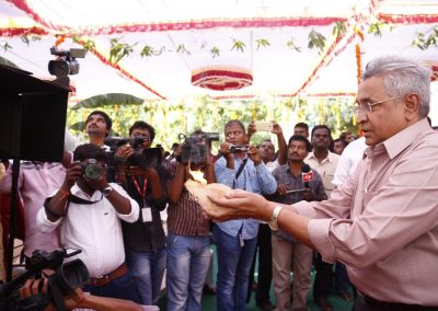 The honorary clap was given by Subbiramireddy while the camera was switched on by Raghu Rama Krishnam Raju. Veteran director K Raghavendra Rao directed the first shot.