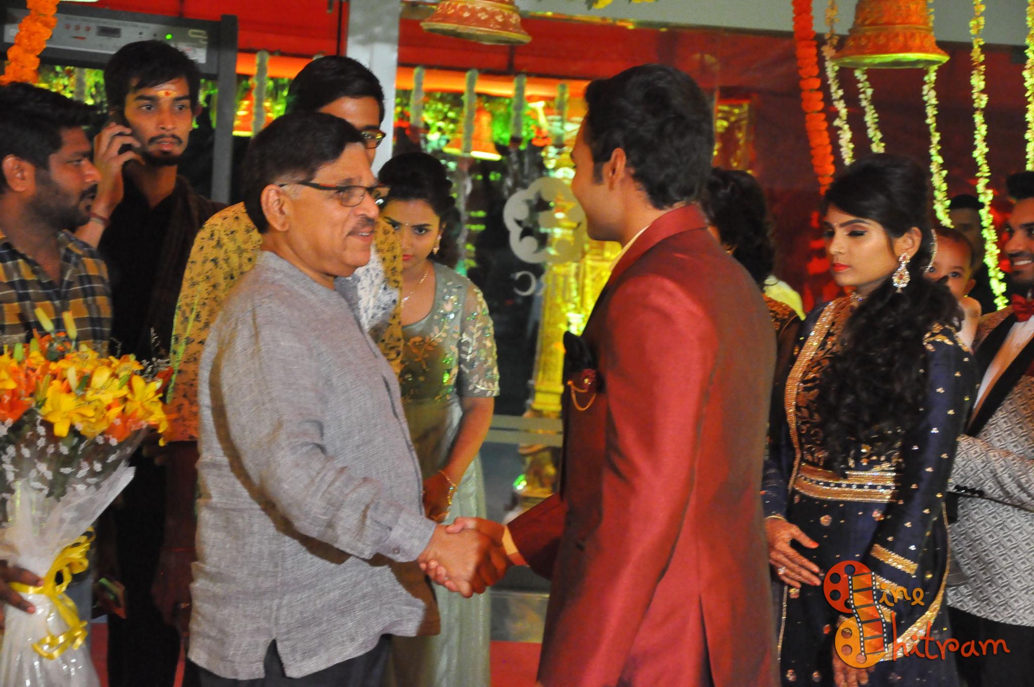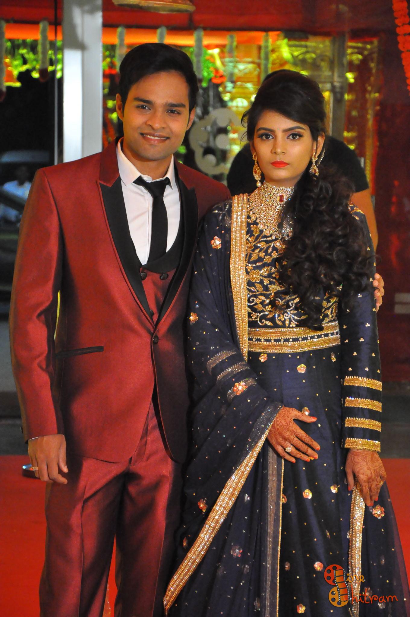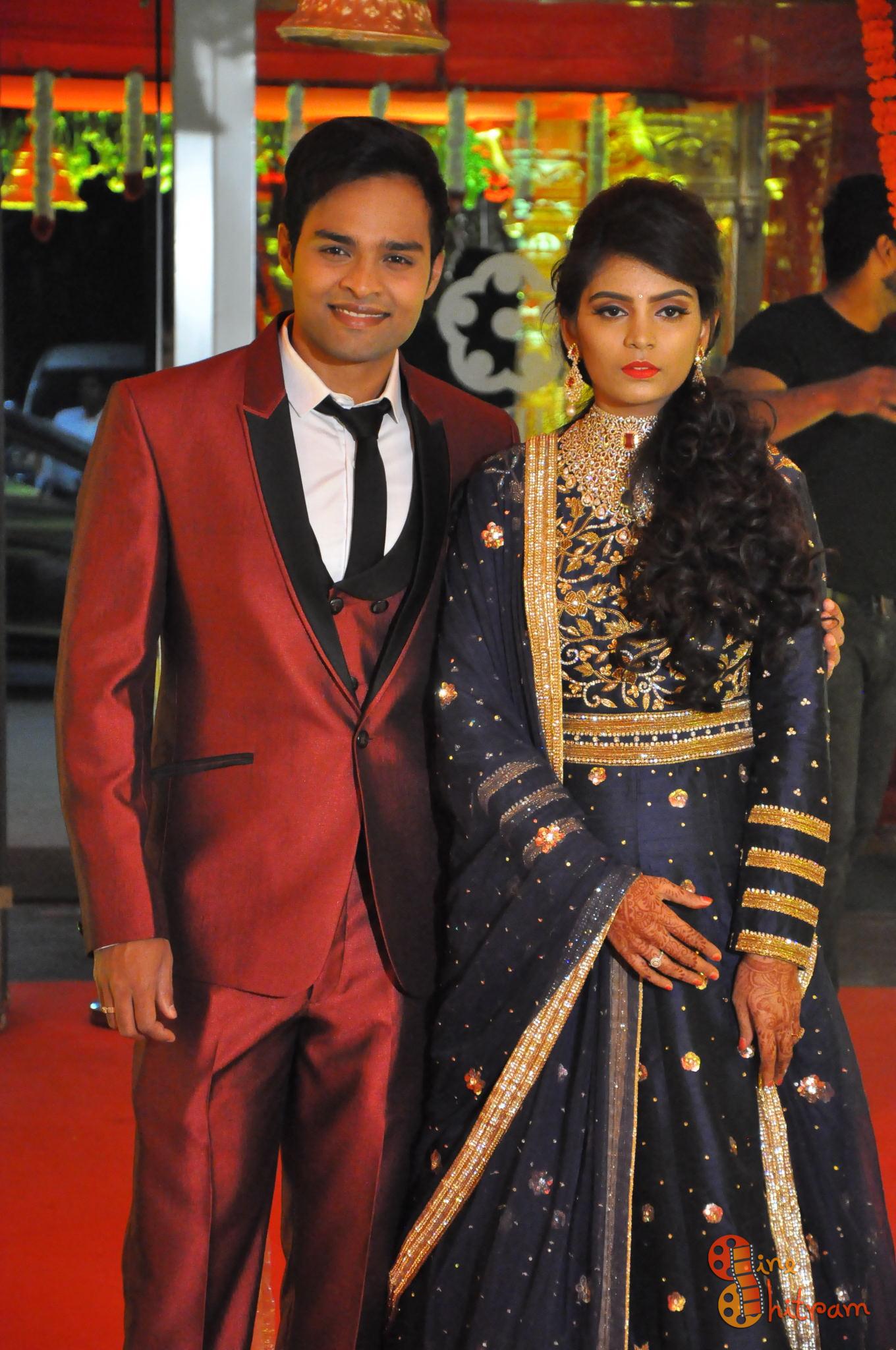 Producer Krishnareddy elder son Bhuvan sagar and sindhusha wedding reception photos