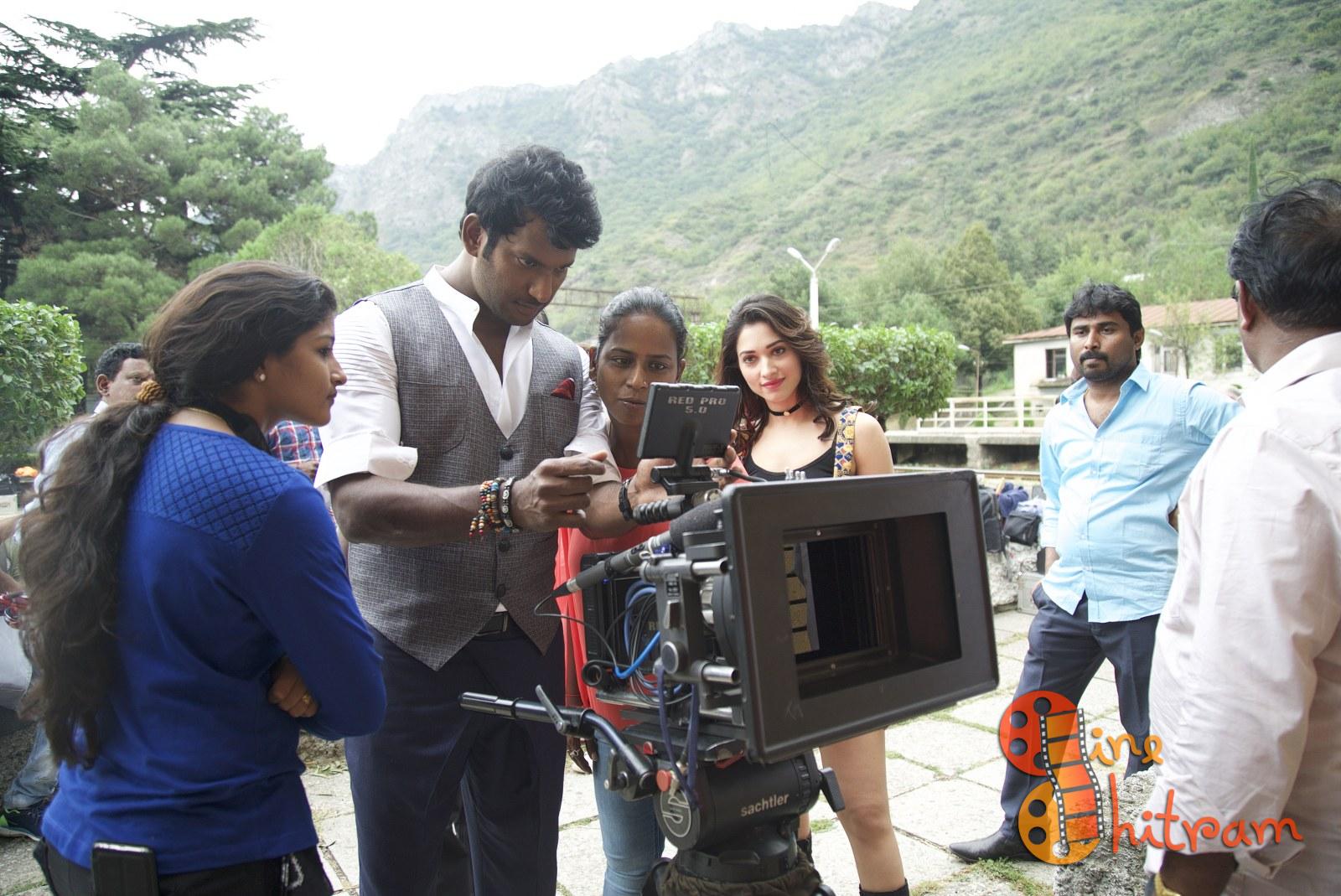 Along with lead pair Vishal and Thamanna, Prime Star Jagapathi Babu played the role of villain. Brahmanandam, Sampath Raj, Charan, Jaya Prakash,  will be seen in other important roles.