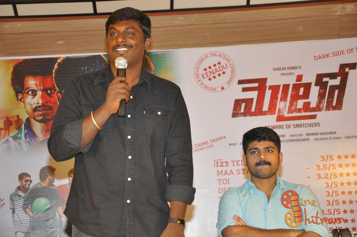 ఈ సందర్భంగా చిత్ర సమర్పకుడు సురేష్ కొండేటి మాట్లాడుతూ ` చాలా రోజుల తర్వాత `మెట్రో` తో మంచి సక్సెస్ అందుకున్నాం. ప్రేమిస్తే, జర్నీ , సలీమ్ తరహాలో మంచి విజయాన్ని అందుకుంది. తెలుగు ప్రేక్షకులు ఈ చిత్రాన్ని ఎంతో ఆదరిస్తున్నారు. సినిమాలో అంతా కొత్త వాళ్లైనా ఇంత ఆదరణ లభిస్తుందంటే కారణం. అందులో ఉన్న కంటెట్ వలనే. మంచి కథాంశం ఉన్న చిత్రాలు ప్రేక్షకులు ఎప్పుడూ ఆదరిస్తారని మరోసారి నా విషయంలో ప్రూవ్ అయింది. అందుకు వారికి ప్రత్యేకంగా కృతజ్ఞతలు తెలుపుతున్నా. ఈ సినిమా ఇంత సక్సెస్ అయిందంటే కారణం మీడియానే. సినిమా చూసి అన్ని వెబ్ సైట్లు మూడుకు పైగా రేటింగ్స్ ఇచ్చి సినిమాకు మరింత బూస్ట్ నిచ్చాయి. ఈ చిత్రాన్ని `చుట్టలబ్బాయి` చిత్రం నిర్మాత రజనీ రామ్, నేను కలిసి రైట్స్ దక్కించుకున్నాం. ఇప్పుడు మా నమ్మకం నిజమైనందుకు సంతోషంగా ఉంది. డైరెక్టర్ ఆనంద్ కృష్ణ ప్రతీ సన్నివేశాన్ని అద్భుతంగా తెరకెక్కించారు. కెమెరా, సినిమా టోగ్రఫీ పనితనం హైలైట్ గా నిలిచింది. ఆనంద్ కృష్ణ భవిష్యత్తులో మరిన్ని మంచి సినిమాలు చేయాలని..శిరీష్ పెద్ద హీరో అవ్వాలని కోరుకుంటున్నా` అని అన్నారు.