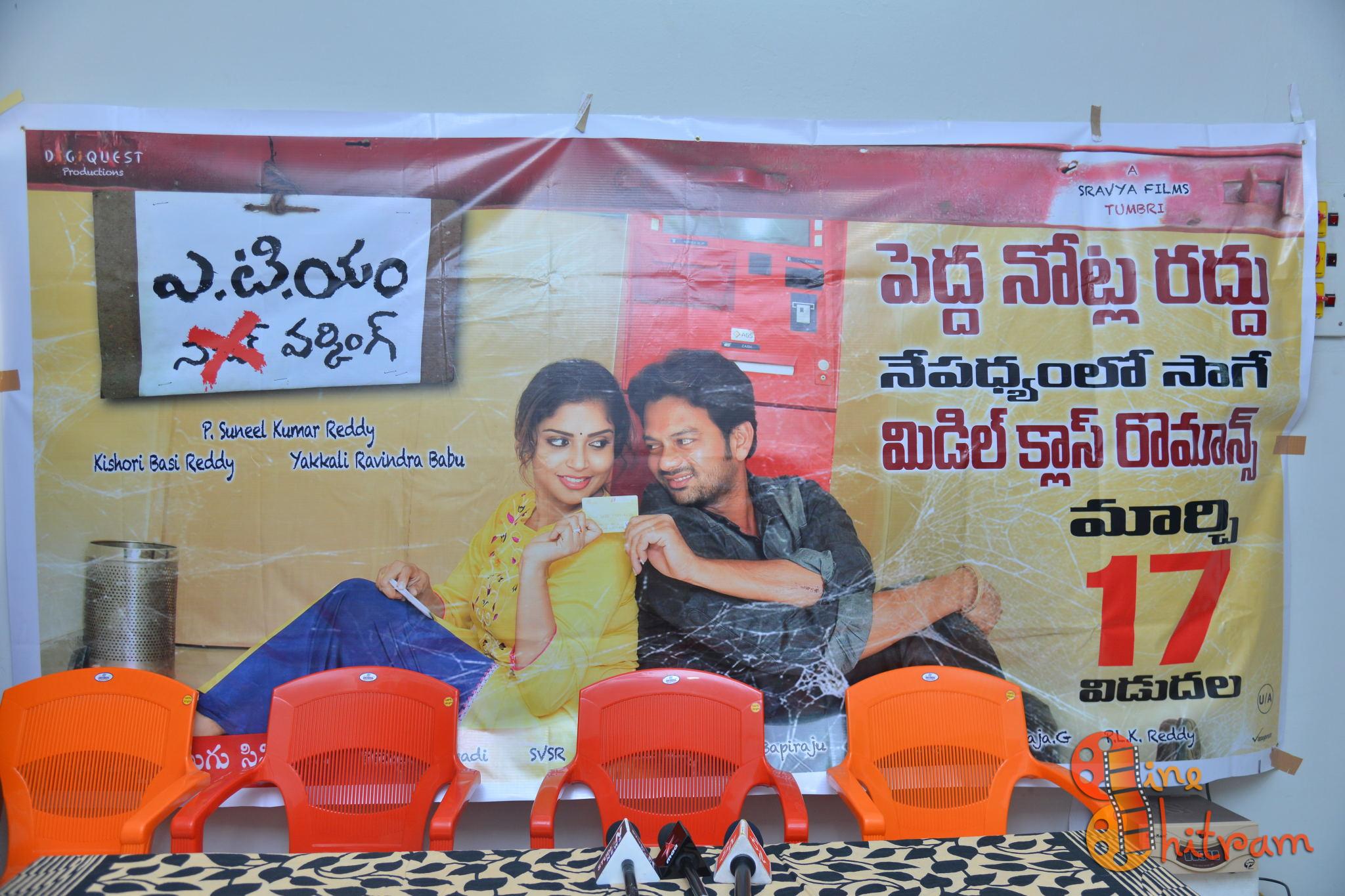 బసిరెడ్డి మాట్లాడుతూ “మార్చి 17న చిత్రాన్ని విడుదల చేస్తున్నాం. బాపిరాజుగారు బ్రహ్మాండంగా విడుదల చేస్తున్నారు. అందరూ తప్పకుండా చూడాల్సిన చిత్రమిది. లైటర్వెయిన్లో ఉంటుంది. పెద్ద నోట్ల రద్దుకు వ్యతిరేకంగా తీసిన సినిమా కాదు. మంచి ప్రేమకథా చిత్రం. పెద్దనోట్ల రద్దువల్ల ప్రజలు ఎదుర్కొన్న ఇబ్బందుల్ని చూపించాం. ఏటీఎం నాట్ వర్కింగ్ అని మేం టైటిల్ పెడితే సెన్సార్ వాళ్లు అభ్యంతరం చెప్పారు. మా టైటిల్ నుంచి `నాట్`ను తొలగించమన్నారు. ఇది అవార్డు సినిమా కాదు“ అని చెప్పారు.