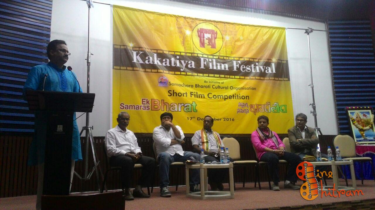 ‘ఏక్ భారత్, సమరస భారత్’ నినాదంతో సమాచార భారతి కల్చరల్ అసోసియేషన్ నిర్వహించిన ‘కాకతీయ షార్ట్ ఫిల్మ్ ఫెస్టివల్’ అవార్డుల ప్రదానోత్సవం శనివారం సాయంత్రం సారథి స్టూడియోస్ లో ఘనంగా జరిగింది. ఆర్.ఎస్.ఎస్. అధికారి డా. అన్నదానం సుబ్రహ్మణ్యం ఈ కార్యక్రమానికి విశిష్ఠ అతిథిగా హాజరై తన సందేశాన్ని అందించారు. ప్రసార, ప్రచార మాధ్యమాల ద్వారా సమాజానికి ఉపయోగపడే అంశాలను, సంఘటితం చేసే విషయాలను ప్రజలకు అందించాలని కోరారు. లఘు చిత్రాలను రూపొందించే యువత ఈ విషయాన్ని దృష్టిలో పెట్టుకుంటే సమాజానికి మేలు చేసిన వారు అవుతారని తెలిపారు. ఈ కార్యక్రమానికి ప్రముఖ దర్శక నిర్మాత రాజ్ కందుకూరి ముఖ్యఅతిథిగా హాజరయ్యారు. ఇటీవల తాను నిర్మించిన ‘పెళ్ళిచూపులు’ చిత్రంతో షార్ట్ ఫిల్మ్ మేకర్ తరుణ్ భాస్కర్ ను దర్శకుడిగా పరిచయం చేశానని, అలానే ప్రతి యేడాది ఒకరిని పరిచయం చేయాలనుకుంటున్నానని అన్నారు. కాకతీయ షార్ట్ ఫిల్మ్ ఫెస్టివల్ లో పాల్గొన్న ఔత్సాహికులకు ఆయన శుభాకాంక్షలు తెలిపారు.