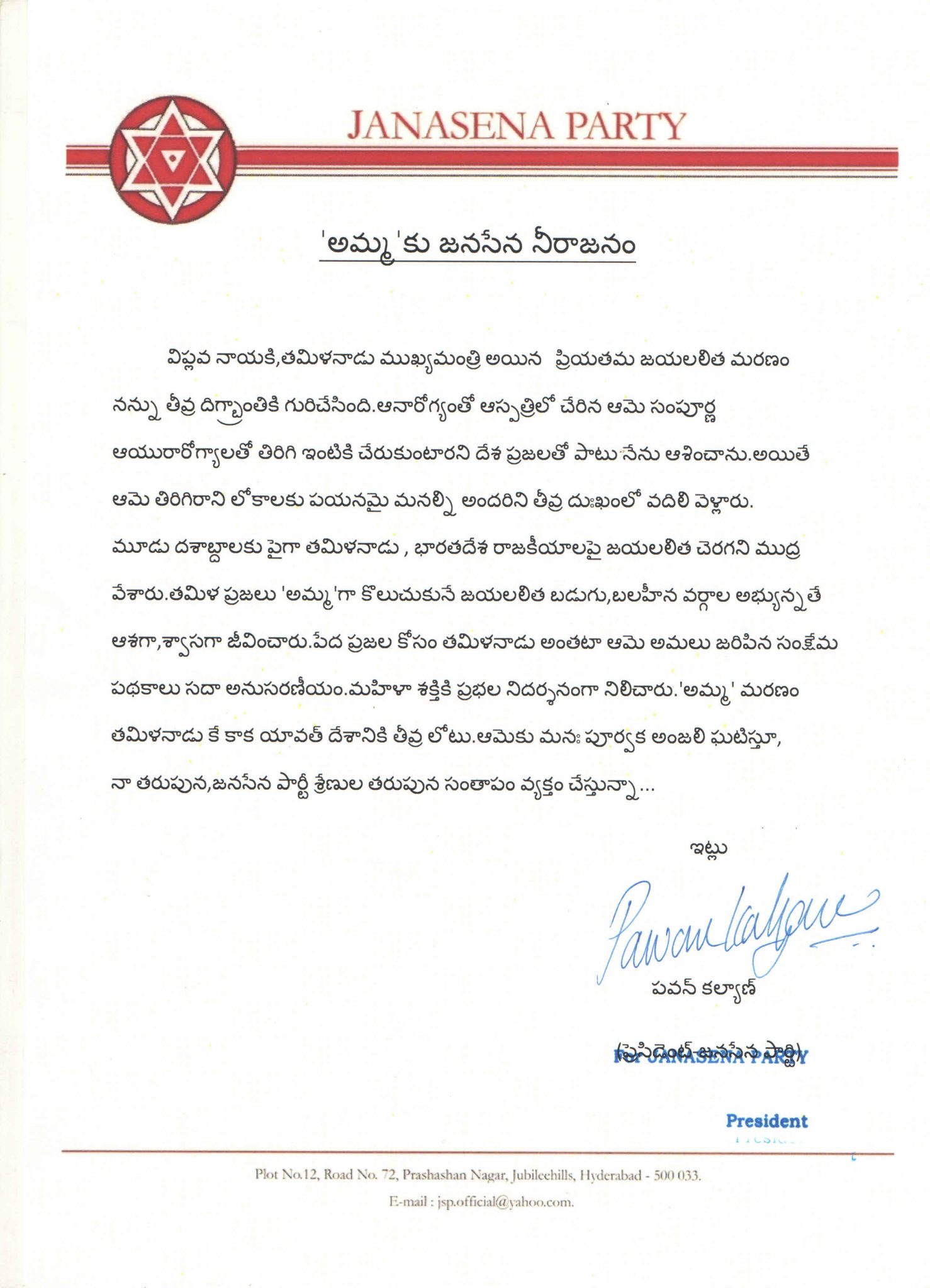 అమ్మకు జనసేన నీరాజనo